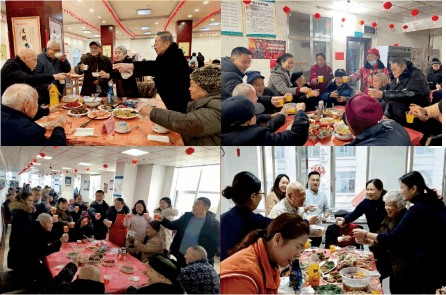 春节前夕,各分院精心准备了年夜饭,长者员工共同品尝着美味佳肴,享受着这难得的团聚时光。现场笑声欢声不断,充满了浓浓的节日气氛。