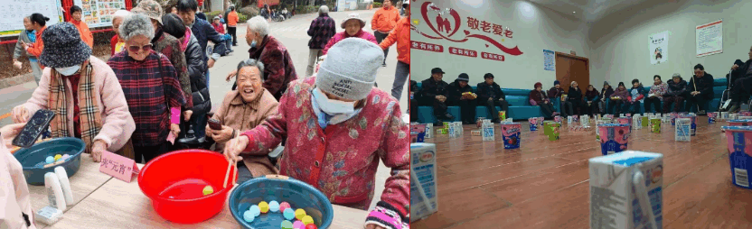 养老院的工作人员们组织了一系列轻松有趣的游戏,如翻滚吧乒乓球、掷保龄球、套圈等,让长者们在欢乐的游戏中感受到节日的喜悦和活力。长者们积极参与,笑声连连,仿佛回到了年轻时的欢乐时光。