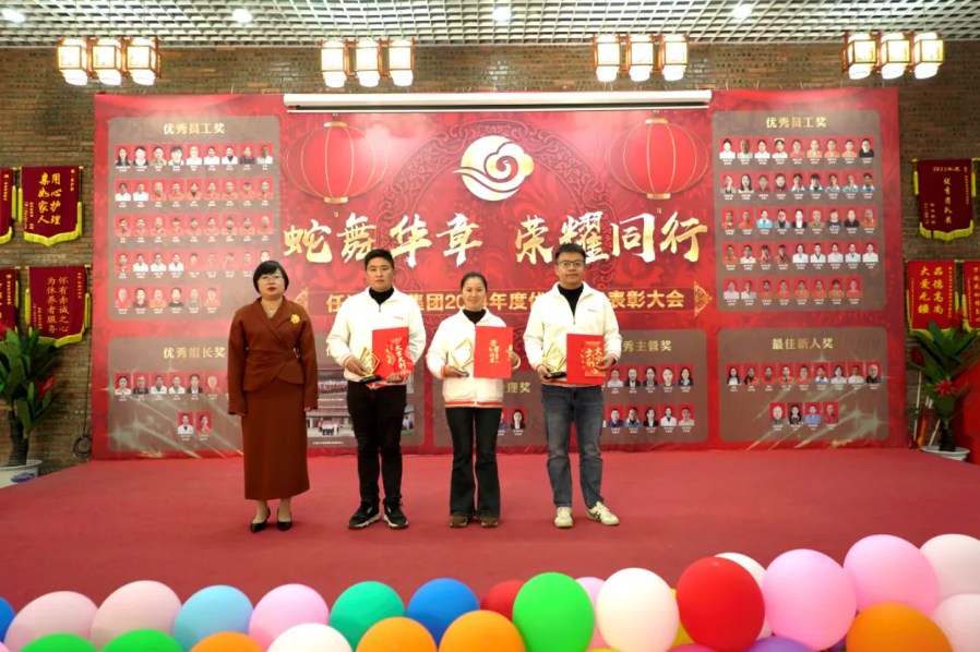 随后,播放了表彰大会的开场视频及《表彰大会主题片》。视频中,一幕幕生动的画面展现了任达养老17年来在银发产业中的深耕细作,员工们的真挚感言与团队口号交织在一起,触动了在场每一个人的心弦。在视频的最后,各个团队激情澎湃地喊出了他们的口号:“任己行孝十七载,达济天下情满怀。深耕银发产业链,引领康养大时代。蛇舞华章显荣耀,携手前行创未来!”这些口号不仅彰显了任达养老17年来的坚持与奉献,更体现了团队对未来的无限憧憬与坚定信念。